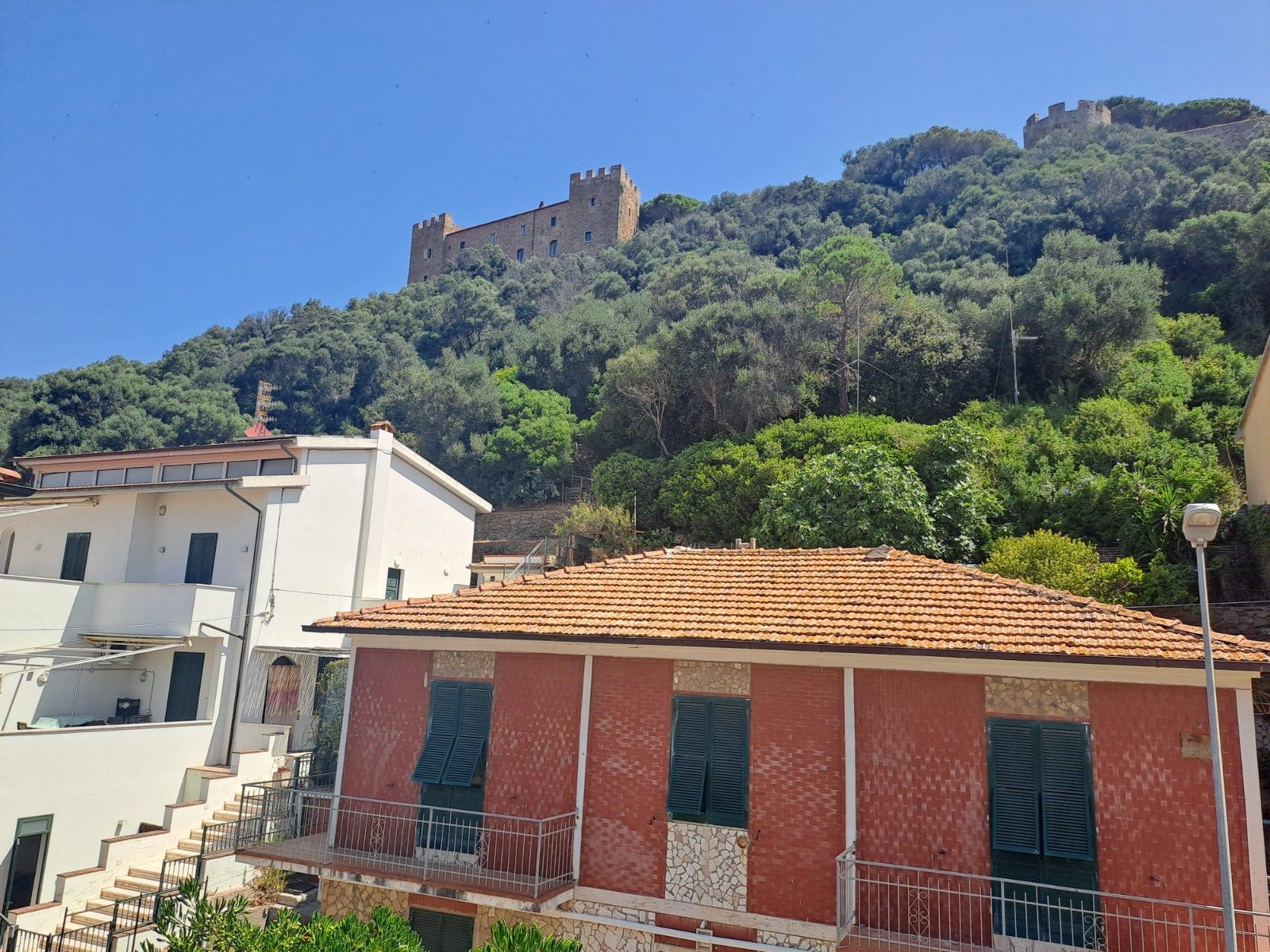 VILLA MERAVIGLIOSA VISTA MARE POGGIO ALLE TRINCEE e posto auto privato coperto. Composta a piano terra da soggiorno affacciato sul bel terrazzo molto ampio con arredi per poter soggiornare all’esterno e tenda parasole per godere della splendida e suggestiva vista sul golfo e sul castello medievale, angolo cottura con affaccio su corte interna con barbecue, 2 camere ,bagno con vasca/doccia.