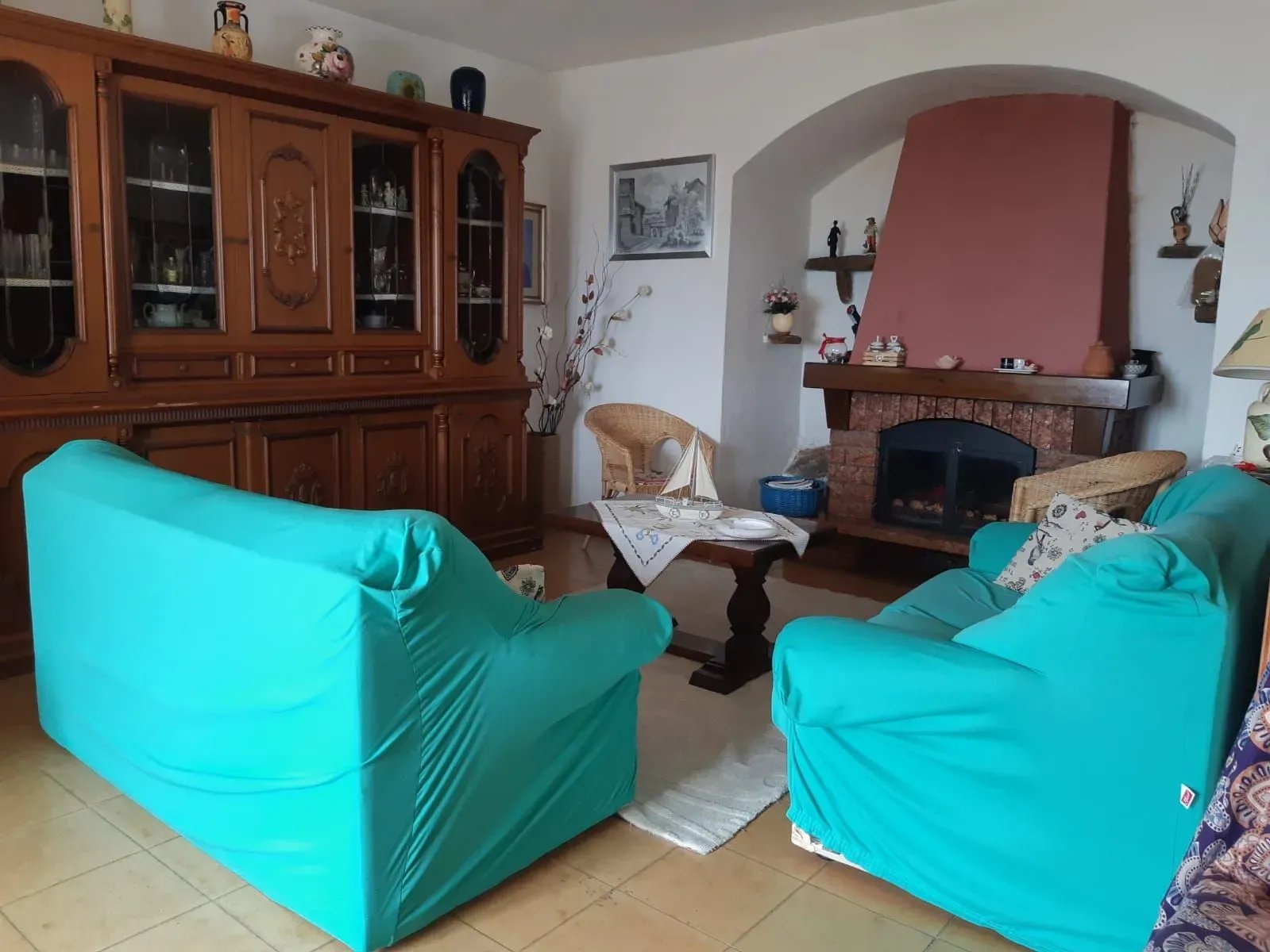 L’immobile principale si sviluppa su 2 piani ed è costituito a piano terra da una sala molto ampia e luminosa con camino, zona pranzo con affaccio sul bel terrazzo abitabile arredato dove si può pranzare godendo una splendida vista sul mare, cucina vivibile, bagno di servizio con box doccia; al piano superiore si trovano le 3 camere da letto: una camera matrimoniale padronale con terrazzo, una cameretta con 2 letti con spazio esterno sul retro, una ulteriore camera matrimoniale per gli ospiti, bagno grande con vasca e doccia.