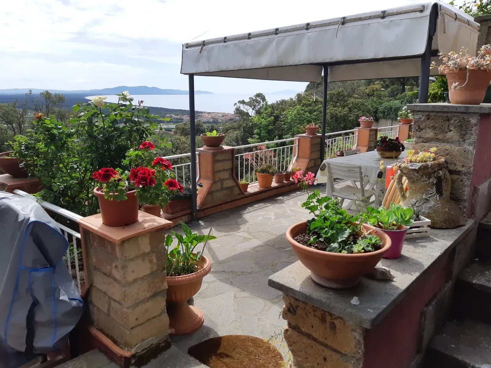L’immobile ha ingresso indipendente e scalinata di accesso fino all’ampia resede privata arredata con gazebo da cui si gode una magnifica vista sul golfo, da Marina di Grosseto fino al Monte Argentario e sul sito protetto dell’oasi faunistica della Diaccia Botrona.